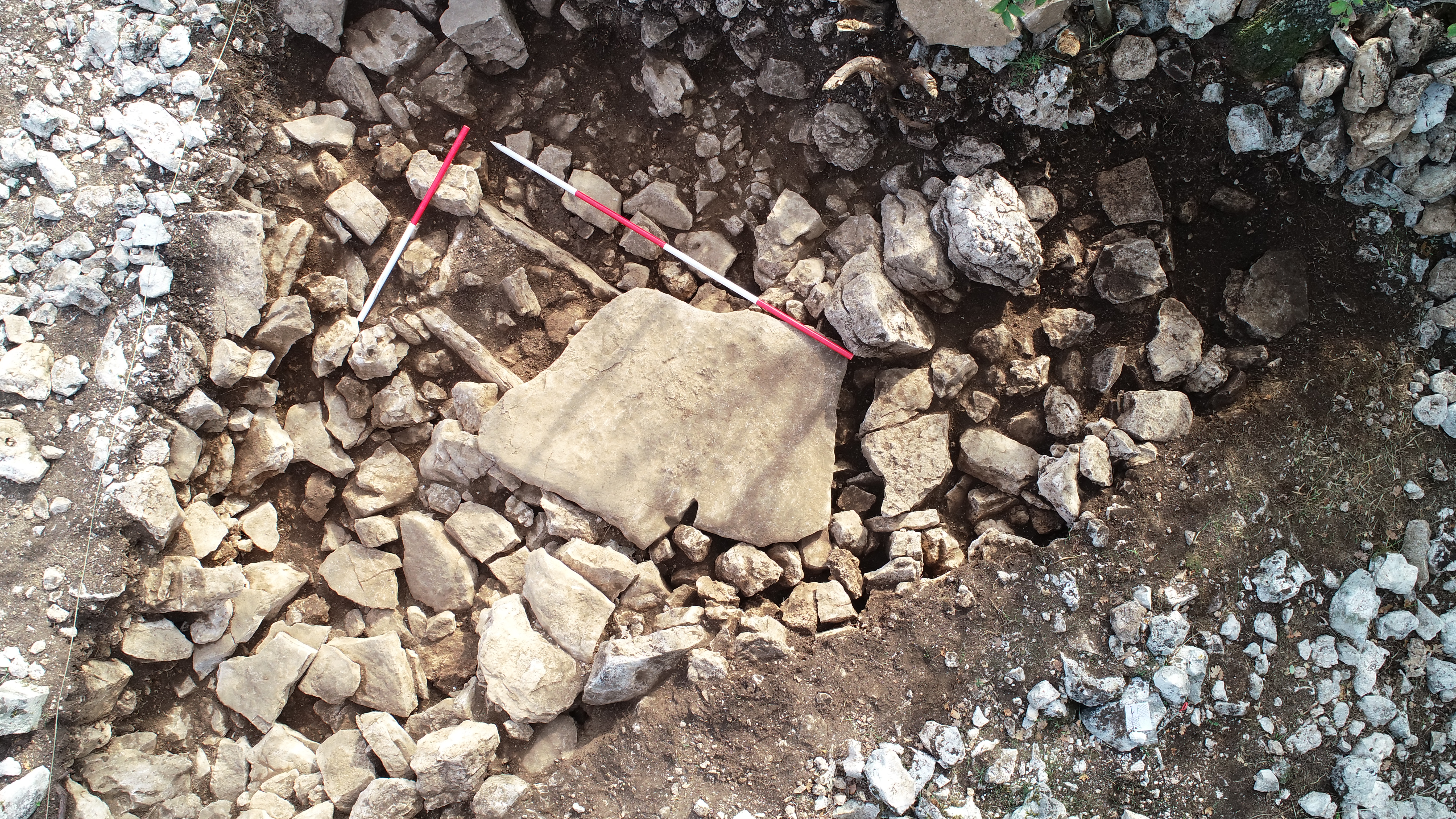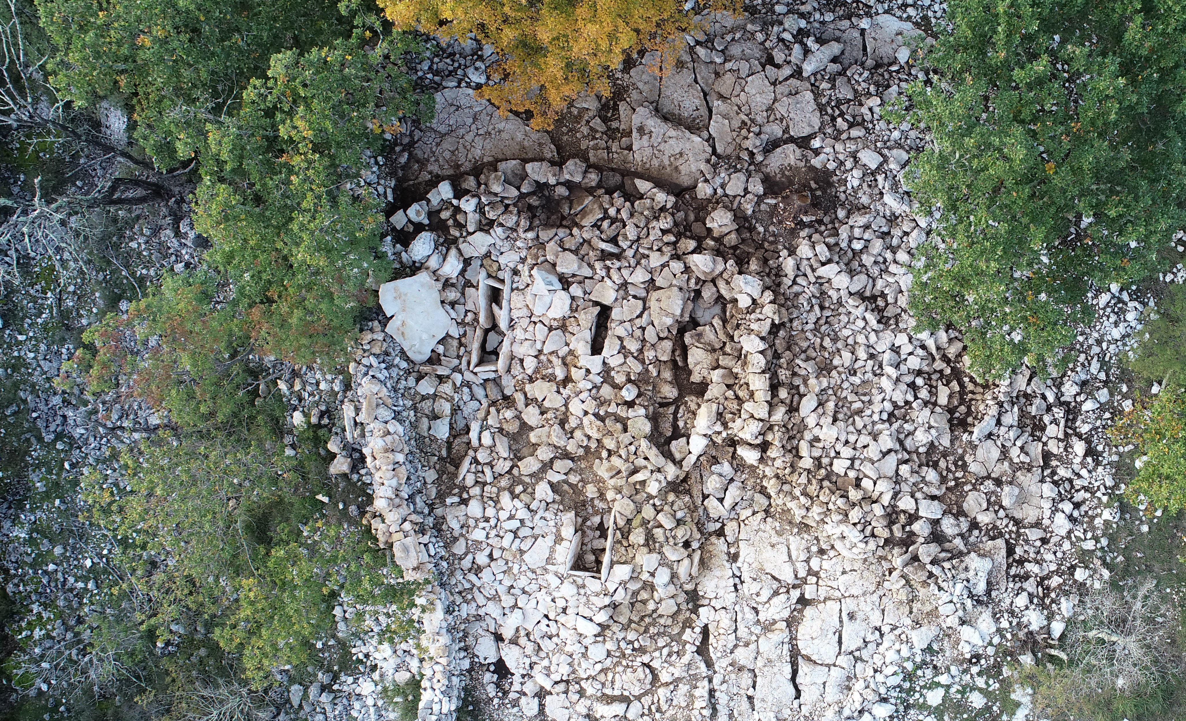 Unter den Grabhügeln, hauptsächlich in den Ritzen-Felskluften zwischen dem Festgestein, wurden Fragmente von Keramikgefäßen aus dem frühen Neolithikum gefunden, also der Kultur der Impresso-Keramik, was auf den Bau der Grabhügel an einem Ort hinweist, der bereits im 6. Jahrtausend v. Ch. genutzt wurde. Die damalige Funktion der Fundstelle bleibt uns jedoch, wegen der geringen Menge an Funden, unbekannt.