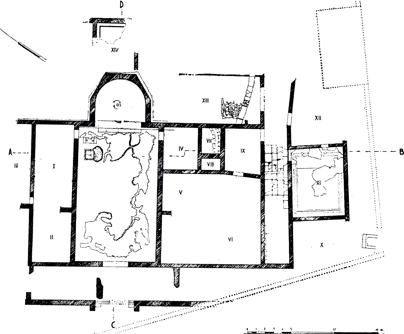 Hier wurden im Jahr 1935 mehrere Räume eines spätantiken Gebäudes erkundet, wobei ein Raum eine Apsis und einen Mosaikboden mit Medaillons hatte, in denen es Abbildungen von Fischen und anderen Meerestieren, Vögeln und Kelchen gab. Von diesem Fund sind nur eine Fotodokumentation und der Grundriss des erforschten Teils erhalten geblieben, und heute sind die Überreste nicht mehr sichtbar. Damals wurde der Fund als frühchristliche Kirche mit Nebenräumen interpretiert, die im 6.-7. Jahrhundert entweiht und verlassen worden sein sollen, weil auf dem Mosaik ein Steinsockel für eine Wein- oder Ölpresse gefunden wurde, sowie eine Feuerstelle, der als Raum für ein improvisiertes Wohnen genutzt worden sein soll. Vor kurzem stellte sich jedoch heraus, dass es sich nicht um eine Kirche handelte, sondern um eine prächtige römische Küstenvilla aus dem 4. Jahrhundert. Der Raum mit der Apsis war wahrscheinlich die zentrale Halle des Gebäudes mit einer Größe von 9,30 x 15,20 m, wobei sich der gesamte Bau jedoch auf etwa 4000 m2 erstreckte. Heute befindet er sich unter späteren und neuzeitlicheren Gebäuden.