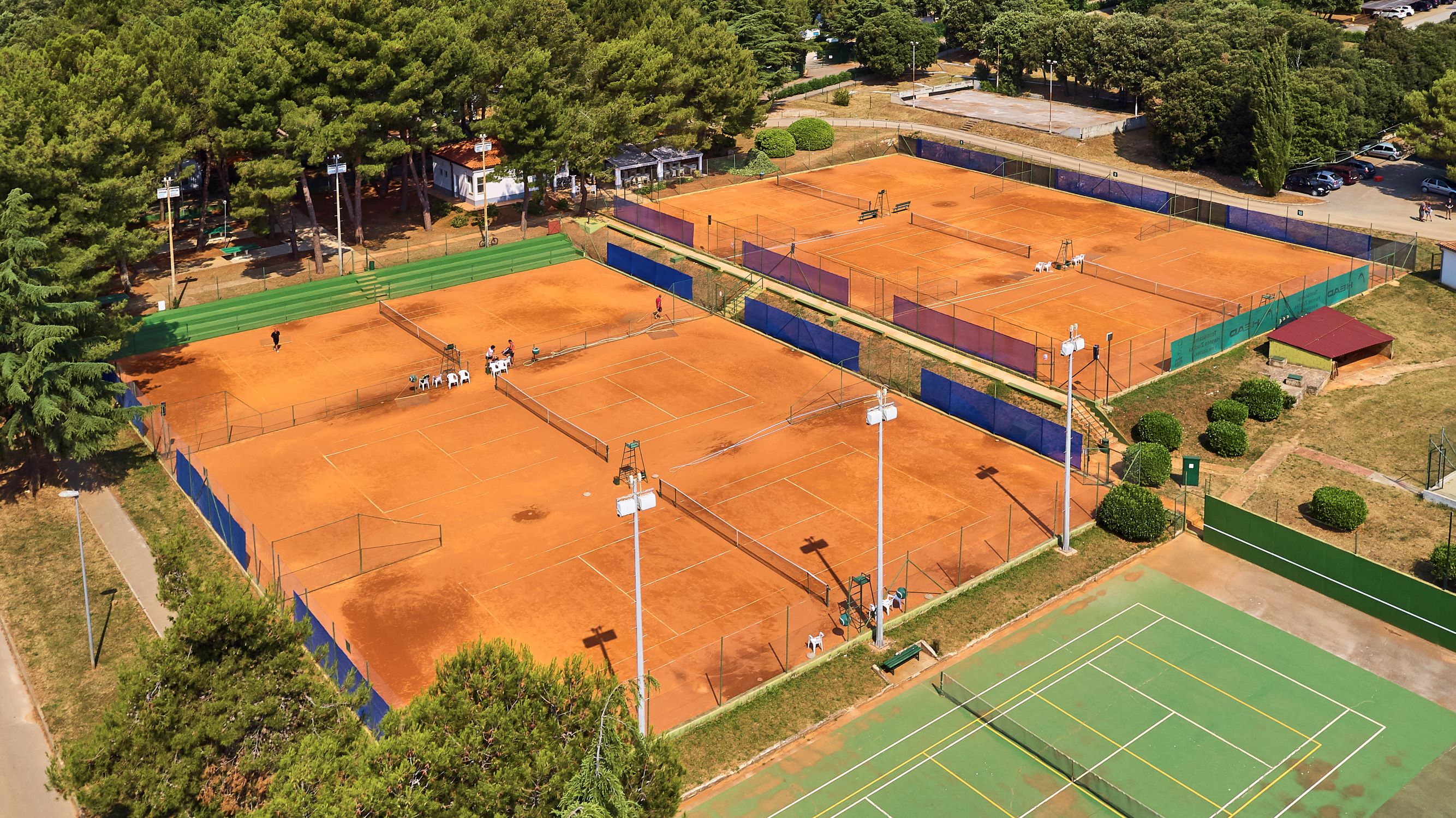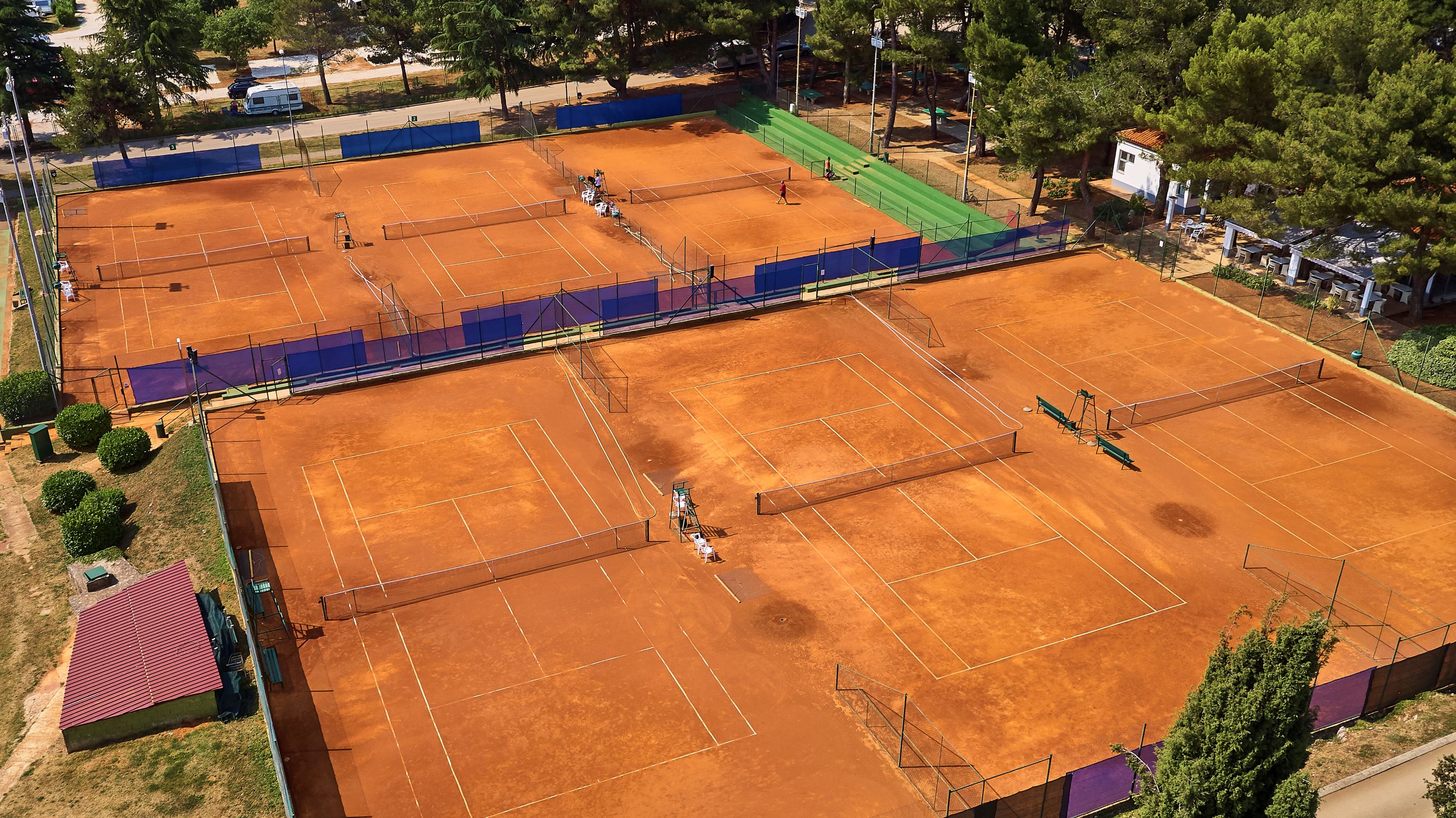Tennisplätze sind ein Bestandteil der Campingplätze und Ferienanlagen in Vrsar und seiner Umgebung und befinden sich dicht am Meer und in den Kiefernwäldchen. Diese Sand- oder Hartplätze werden im Sommer zu Orten der spotlichen Begegnung sowohl für die Gäste als auch für die einheimischen Freizeitsportler.