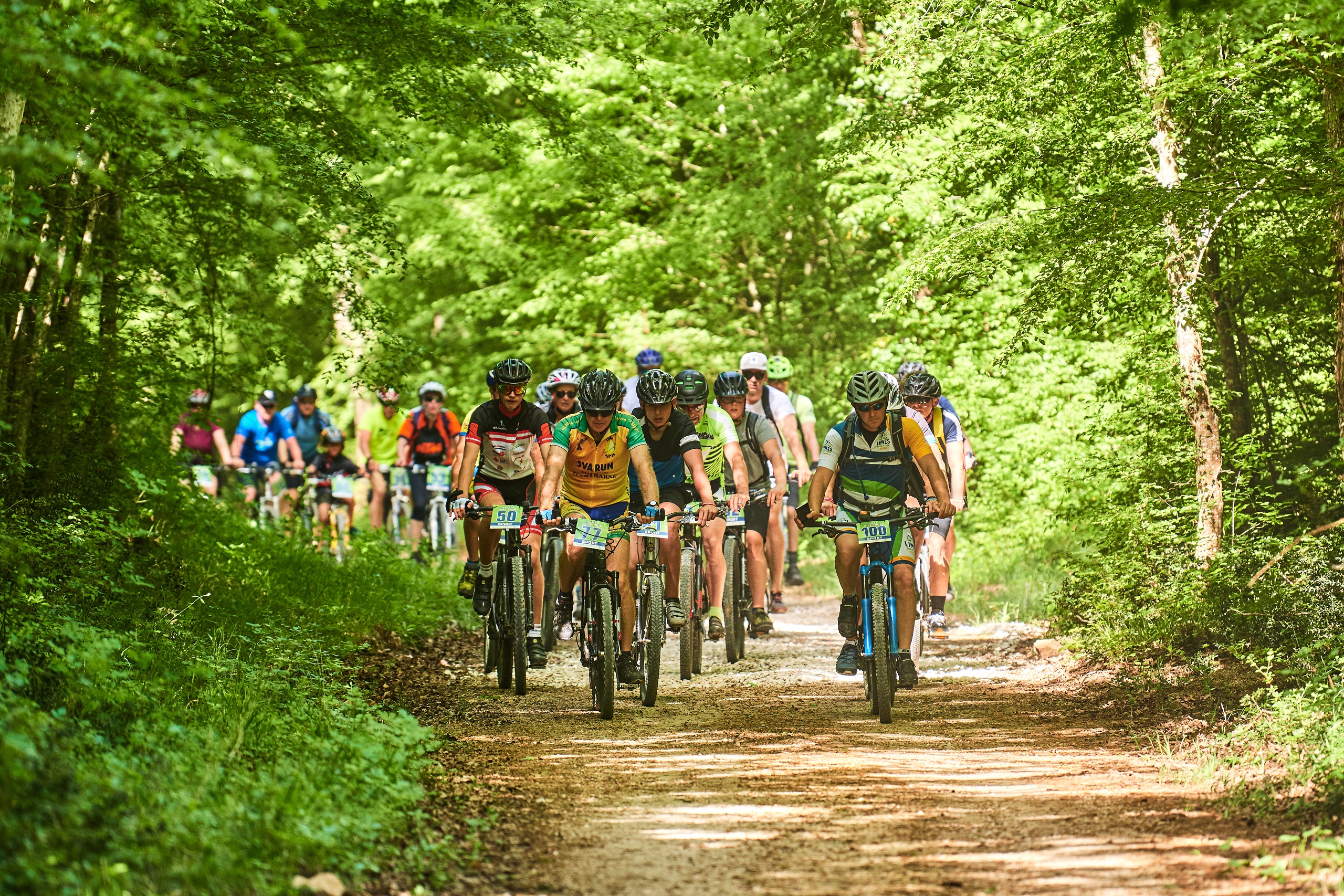 Eine Freizeit-MTB-Radtour auf einem Radweg durch den Kontija-Wald