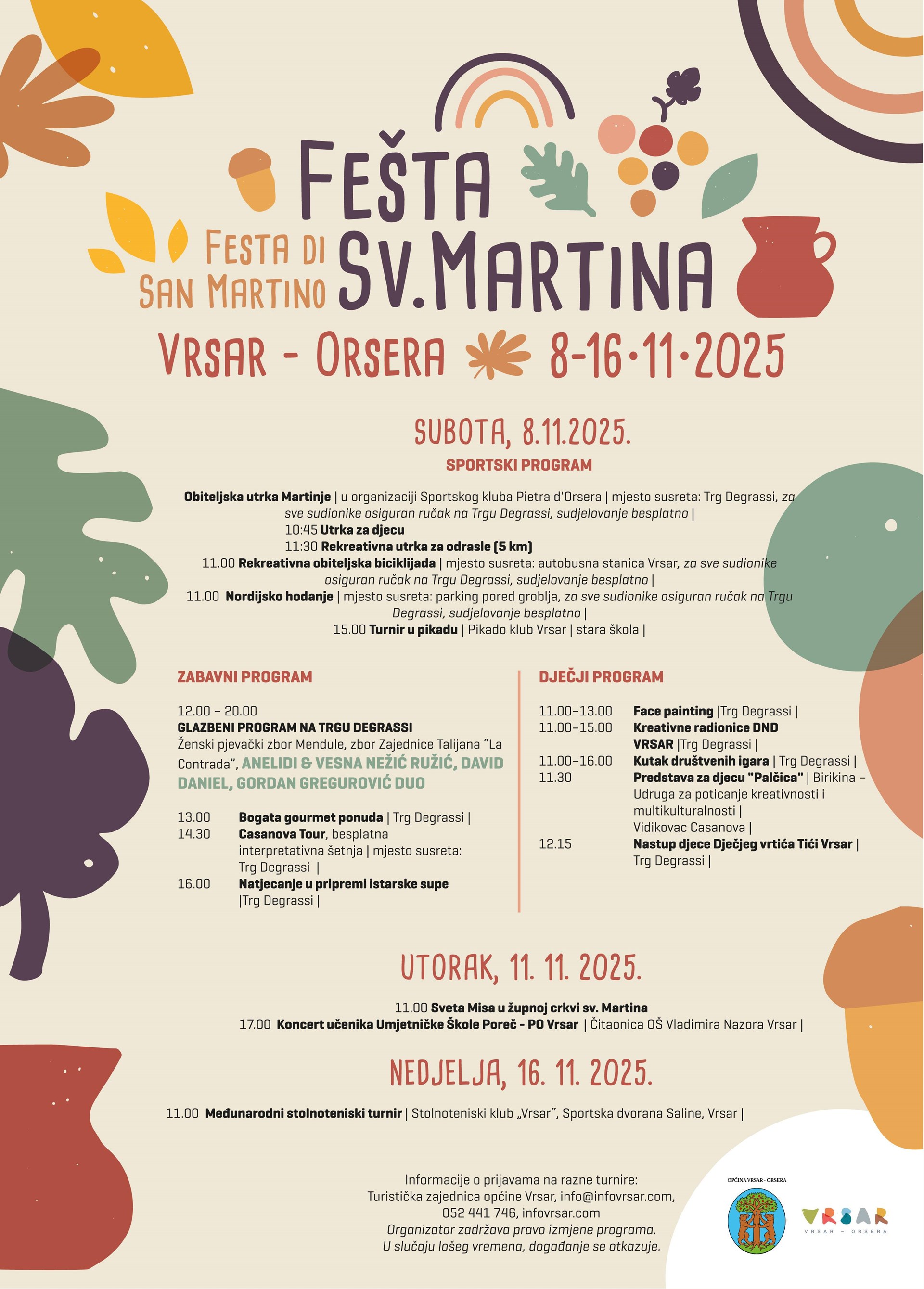 Ove godine, manifestacija će se održati 8.11.2025. U centru Vrsara priprema se bogat i raznovrstan program koji će zadovoljiti sve generacije.