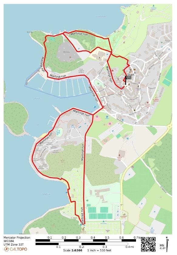 Glavna utrka za odrasle kreće s Trga Degrassi, prolazi kroz vrsarsku marinu, obići će kamp Porto Sole, te vraća se na Trg Degrassi gdje je i cilj. Predviđena duljina je 5 kilometara.