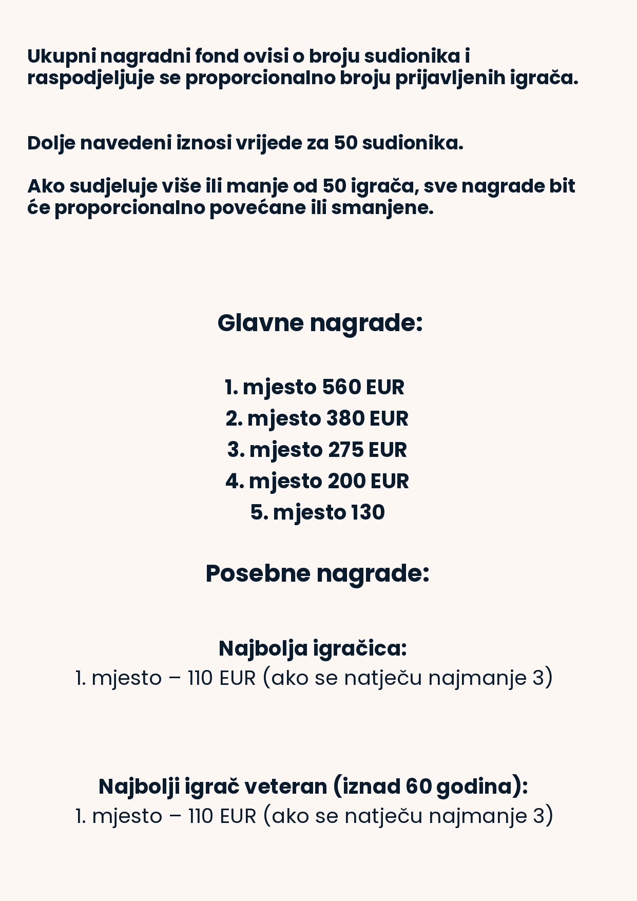 Turnir se rejtingira za standardni FIDE rejting, pružajući sudionicima priliku za osvajanje vrijednih bodova i natjecanje na visokoj razini.