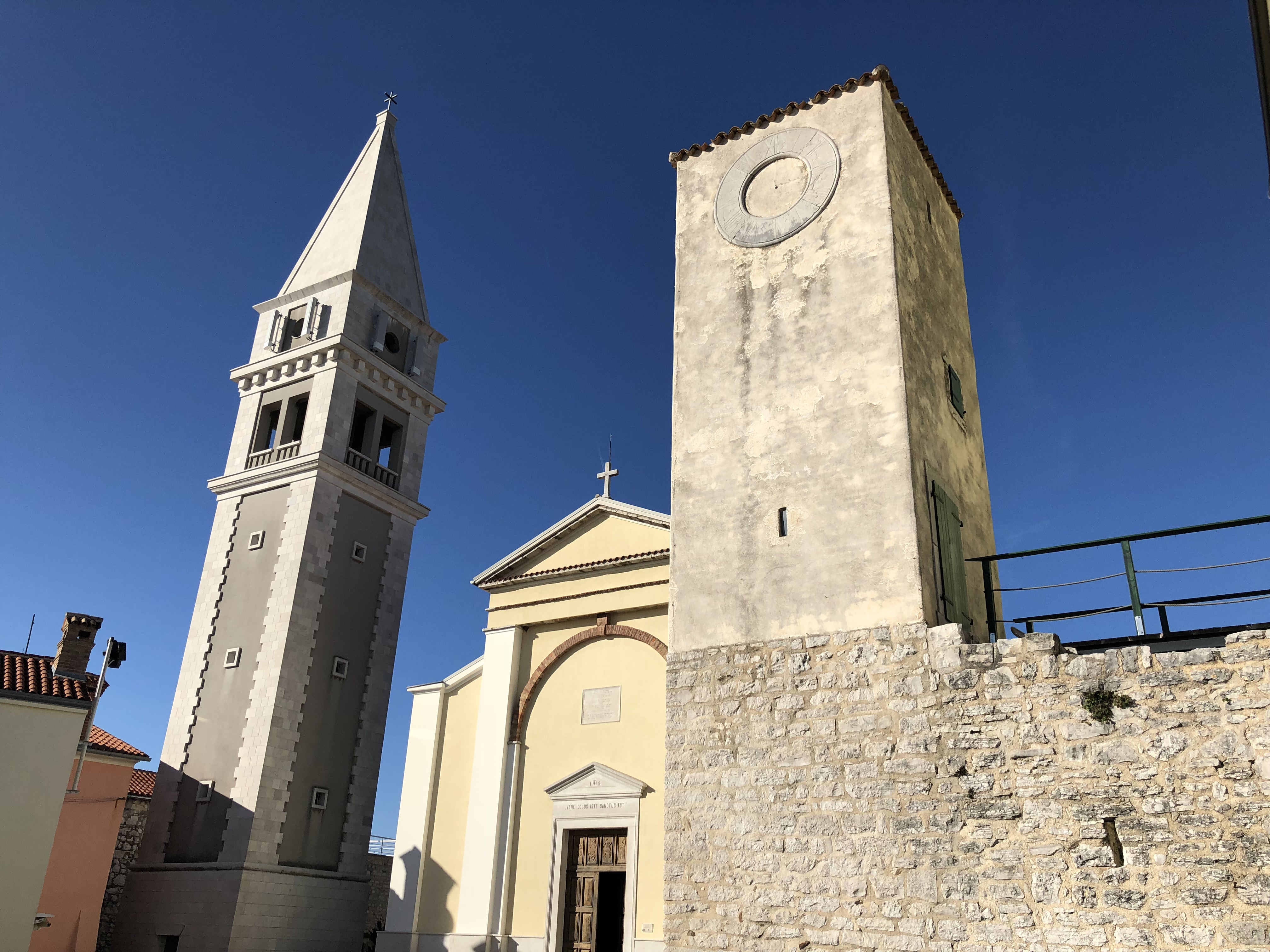Godine 1982. donesena je odluka da se ovo zemljište dodijeli župi u Vrsaru s ciljem da se na njoj podigne zvonik, što je provedeno tek 1984. Te iste godine tadašnji zaslužni vrsarski župnik Ivan Jelovac naručio je projekt vrsarskoga zvonika, dok je krajem 1985. godine izvršeno geotehničko ispitivanje tla. Izvedbeni projekt zvonika izrađen je i odobren 1987., dok je koncem studenoga 1988. godine izdana i pravomoćna građevinska dozvola. Radovi na zvoniku otpočeli su 27. siječnja 1989. godine dok je sam zvonik u potpunosti dovršen 1991. godine.