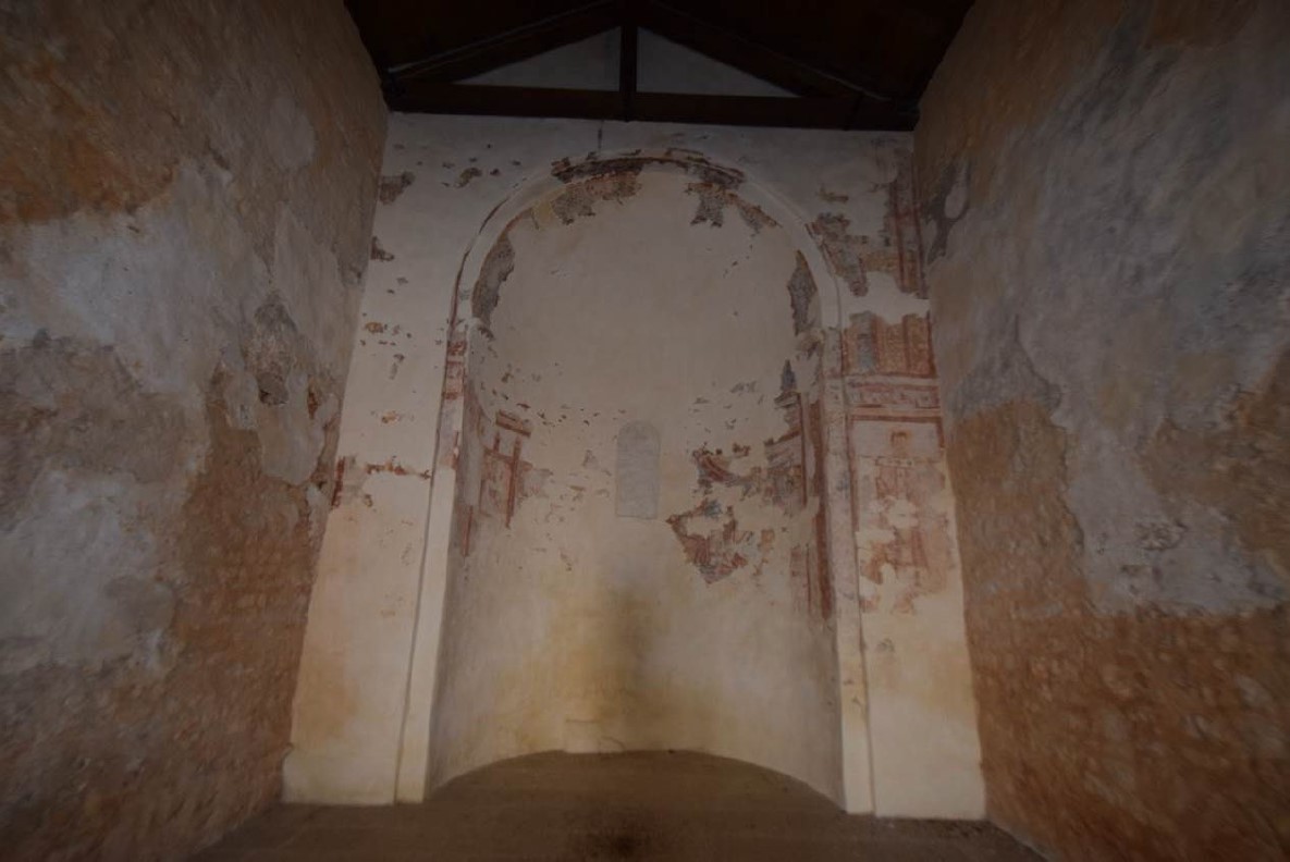 Legend has it that the monastery was established at the beginning of the 11th century by St Romuald, the founder of the Camaldolese Benedictines, who had previously been living a secluded life in the nearby cave on the slopes of Lim Bay. Part of the cloister and two churches have been preserved of the once mighty St Michael’s Abbey. The smaller church is a sixth-century early Byzantine building with a polygonal apse, a barrel vault and traces of frescoes (probably dating to the 8th century) dedicated to the Blessed Virgin Mary. The larger, eleventh-century church of St Michael is a hall church with a semi-circular apse. The original transennae with interlaced decoration are preserved in the lateral wall, high under the roof. In the church there are also the remains of Romanesque frescoes depicting the martyrdom and stoning of St Stephen. The best-preserved representation is the figure of a saint on the right side of the triumphal arch. The young-looking tonsured figure with a crosier stick represents a Benedictine saint, perhaps the very St Romuald. Figures are shaped using light and dark contours, with characteristic red spots on the cheeks. There is a broad range of iconographic and painting models, from Carolingian elements in ornamentation to Hellenistic-oriental (Byzantine) motifs in clothes. All of these elements are characteristic of South German Benedictine art of the Ottonian period.