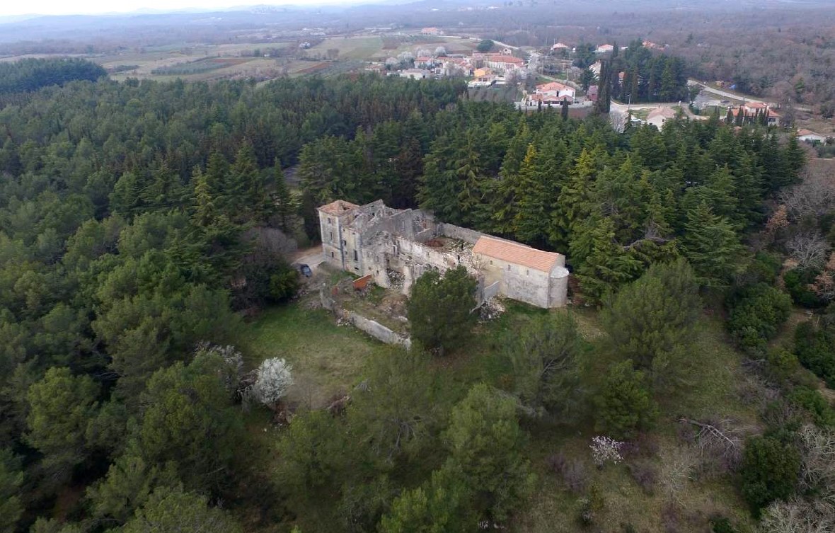 Over the centuries, the monastic estate that encompassed a large share of Kontija Forest kept expanding owing to donations of the Istrian nobility. Following a short period of abandonment due to plague epidemics, it was home to the Knights Templar. The Camaldolese monastery of St Michael in Murano near Venice took it over in 1394, and it later came into possession of the monastery of St Matthew in Murano. The cartographic representation of the entire estate from the 15th century by the renowned Venetian cartographer Fra Mauro has been preserved in its seventeenth-century printed form. The monks left the monastery in 1652. Following a land exchange in 1772, the estate became property of the noble Coletti family from Conegliano that built a Neoclassical palace on the monastery ruins. At the time, the complex was the centre of a farming estate organized in compliance with contemporary principles of modern agriculture. After the death of the last male family member, it became state property in the second half of the 19th century, the headquarters of the forest estate for a period of time. However, the palace, the monastery buildings and the churches eventually became dilapidated and started to fall into decay, until the beginning of the 21st century and the launching of the planning phase for the renovation of the complex. Conservation works have so far included the churches, with ongoing research aimed at revitalising the whole complex.