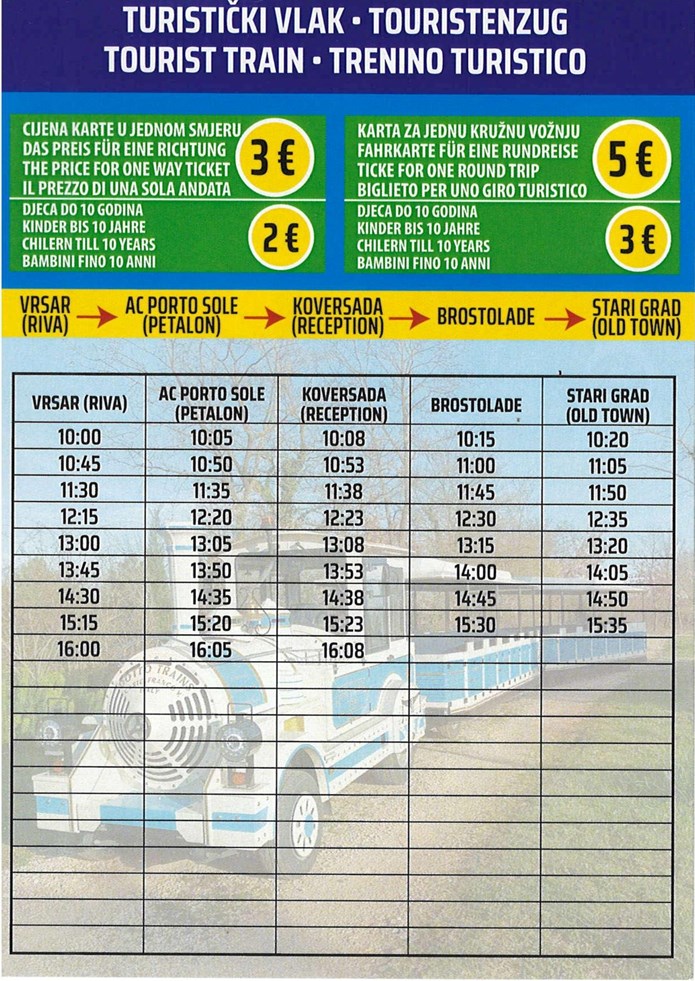 below you can find more information about the timetable of the tourist train that allows you to visit Vrsar in a comfortable and interesting way.