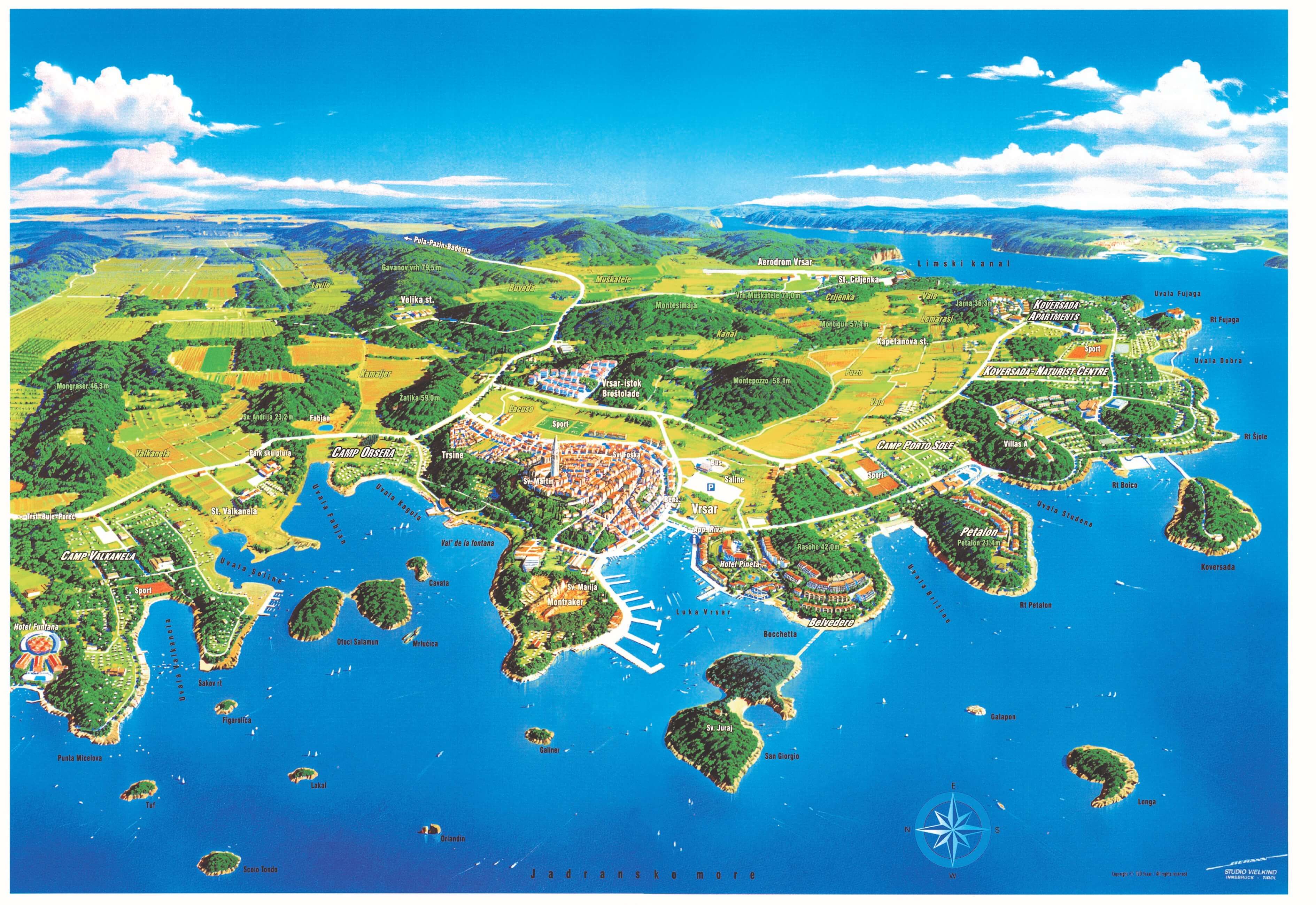 La manutenzione dell’isola è accurata: esiste una rete di sentieri che la attraversano permettendo così’ al vacanziere di visitare ogni sua parte. È consentito soggiornare sull’isola solo di giorno. Nella parte orientale, sotto la chiesa di S. Giorgio, si trova un piccolo ancoraggio, da dove si può accedere all’isola. Molti visitatori attraversano a nuoto la breve distanza tra la terraferma e l’isola concedendosi così un‘unica, e diversa, veduta della città vecchia di Orsera, del porto e della marina.